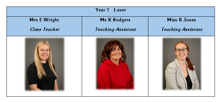 Our Year 1 Laver Class is taught by Mrs Wright. Ms Rodgers and Miss Jones are our Teaching Assistants.