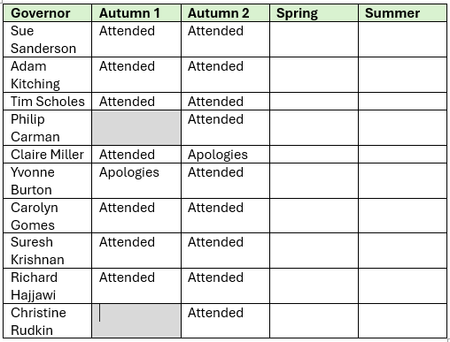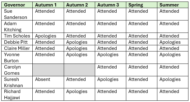 The school Office Manager, Deputy headteacher and additional staff members attend meetings as and when required or invited.