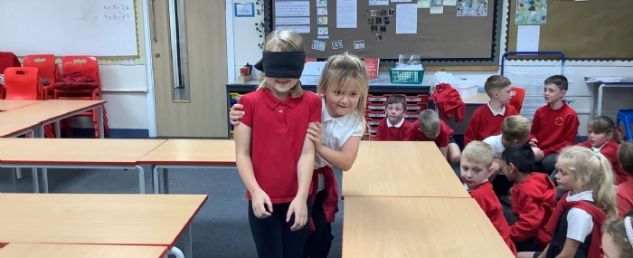 In RE, we attempted to make our way through a maze set up in the classroom...blindfolded! This was a tricky task! We then tried it again, this time being led by aa guide, using words and actions to help us through safely. We talked about how the Bible is a guide for Christians and how God's words help to steer us safely through life, making the right choices and taking the right path.