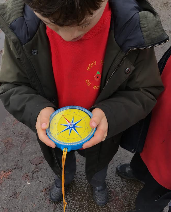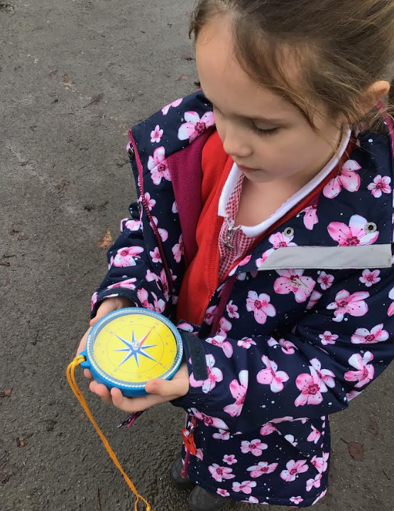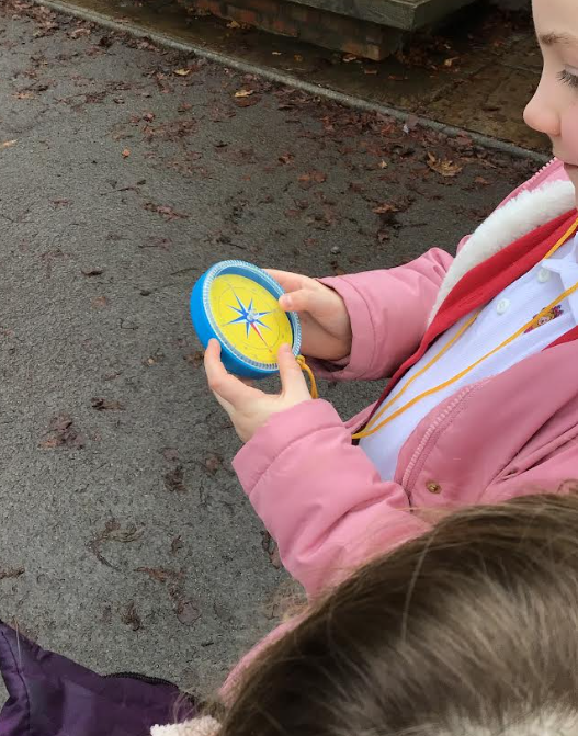 In Learning Means the World we have been using compasses. We noticed that the compass has four points – North, East, South and West. We enjoyed following a range of instructions around the playground, using the compass to ensure we were going in the right direction.