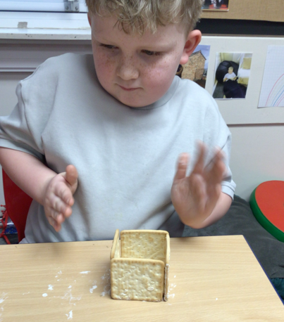 In RE, we learnt about the Jewish festival of Sukkot. To understand the significance of the temporary shelters (Sukkahs) used during this festival, we got creative! The children built their very own miniature Sukkahs using crackers - it was a sticky and tasty task!