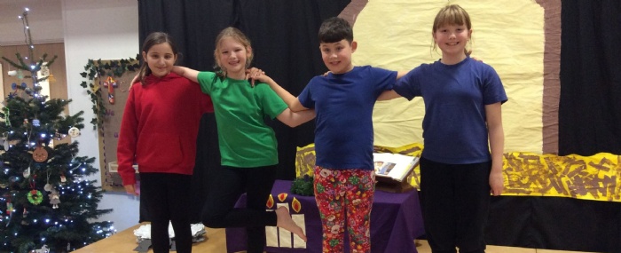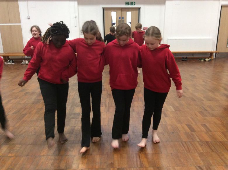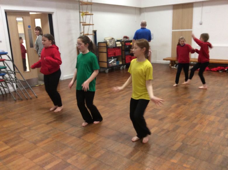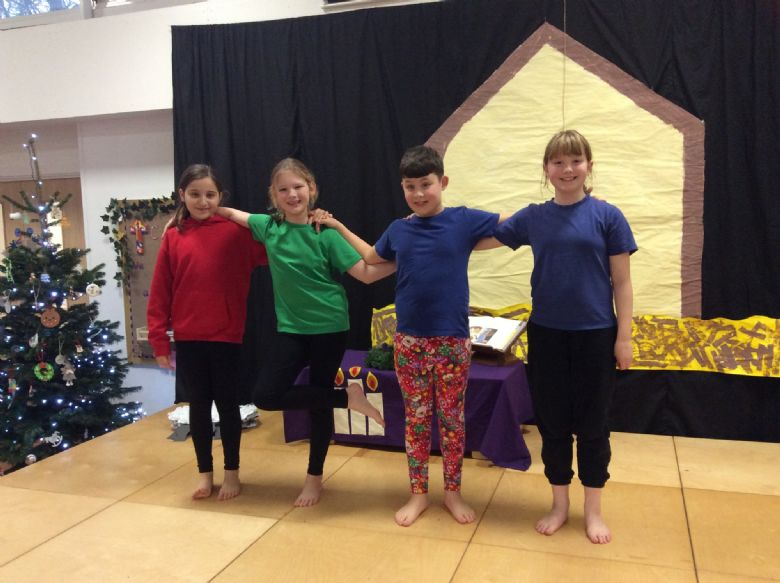 In P.E., the class worked in small groups to choreograph their own line dances. The stage in the hall for the Nativity gave an excellent centre point for their performances!
