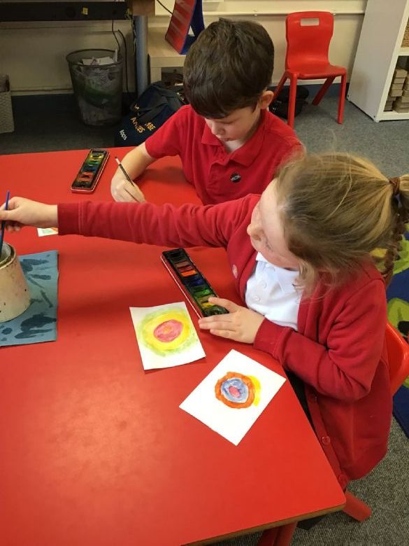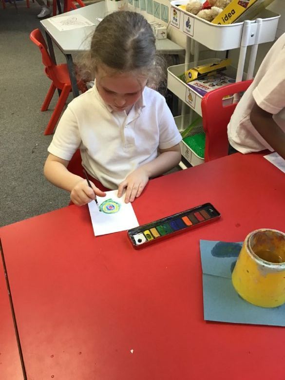 Ms Needham taught us how to paint flowers using concentric circles in art on Tuesday.